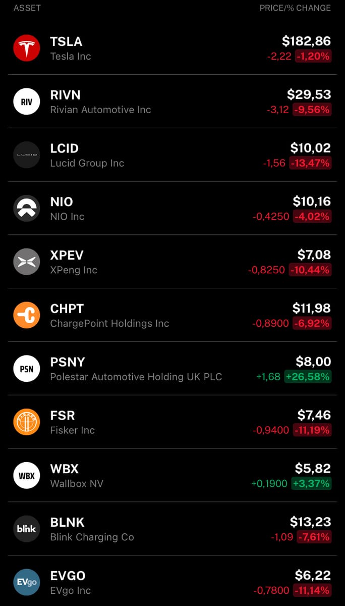 No big news on the stock front this week. The one outlier is Polestar, which went up another 20+% from $6.32/share to $8/share. The company is now up >90% in the last 30 days, from trading at just above $4/share back in October. Remember that past performance is not indicative of future results ;)